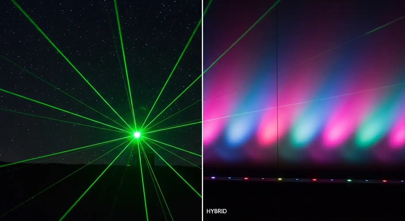 - Hybrid Models: The best units use both. They give you the “pop” of the laser stars against the soft, flowing background of the LED nebula.
