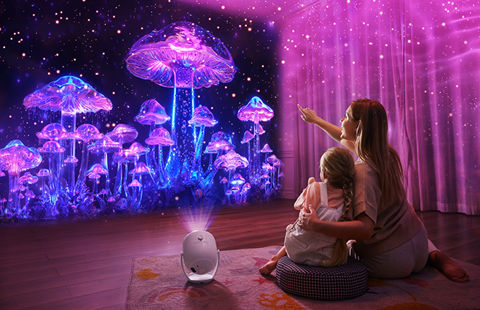 These starry sky projector uses advanced optical technology to project realistic starry skies indoors, offers nebula or aurora effects, Built-in bluetooth speakers, color modes and timing functions. Ideal for parties, dates, camping, or cozy nights in.