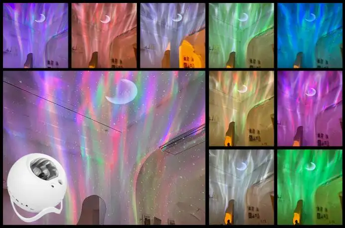 • Choose an aurora tone: calming green, dreamy purple, or crisp blue blends